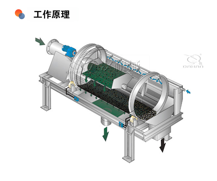 1、采用了滾動(dòng)輸送的原理,摩擦系數(shù)小、使用壽命長(zhǎng)、維護(hù)成本低、且篩孔不易堵塞;