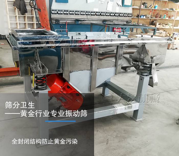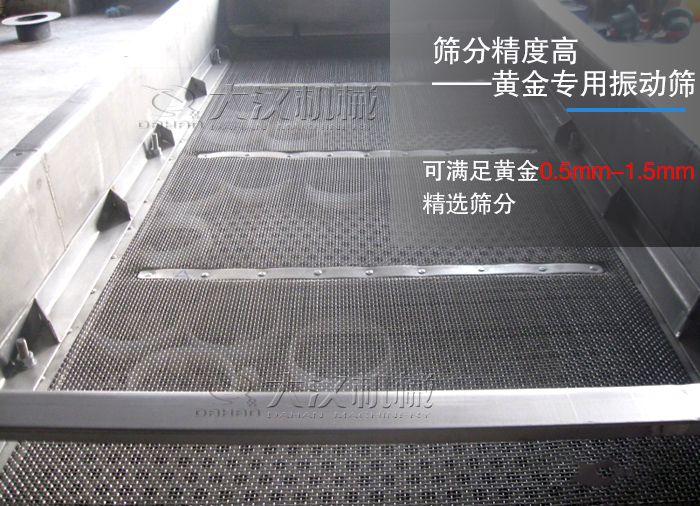 黃金的顆粒大小在0.5mm-1.5mm之間,我們大漢生產(chǎn)的不銹鋼直線(xiàn)振動(dòng)篩能滿(mǎn)足細(xì)至0.028mm以細(xì)顆?;蚍勰钗锪虾Y分,粗至5mm大顆粒塊狀物料的篩分,其中多層的篩網(wǎng)安裝也能夠達(dá)到同時(shí)篩出不同規(guī)格物料的要求,適應(yīng)多種規(guī)格的生產(chǎn)標(biāo)準(zhǔn)。而且不銹鋼直線(xiàn)振動(dòng)篩還配備有彈跳球,在篩分過(guò)程中不停撞擊篩網(wǎng),達(dá)到清網(wǎng)的目的,網(wǎng)孔不會(huì)堵塞,滿(mǎn)足精度的同時(shí)還能保證篩分效率。