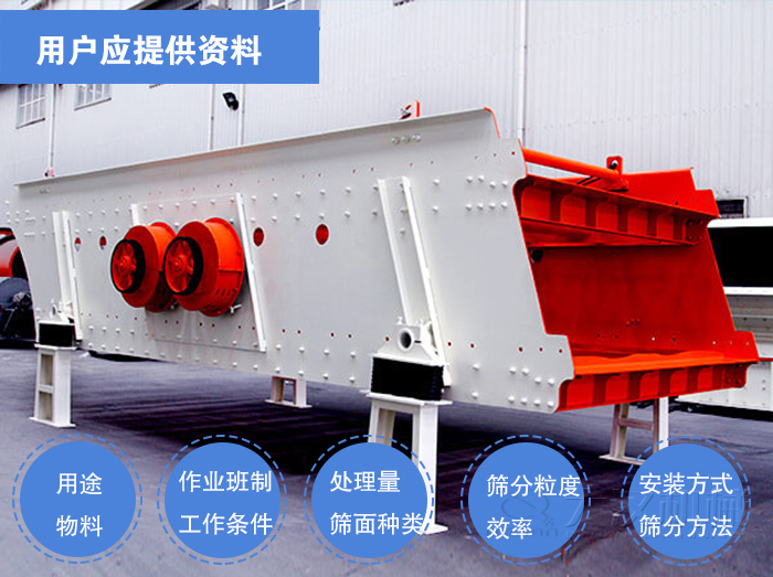 ①篩子的用途。② 物料特征 包括:種類(lèi)、散密度、水份、顆粒形狀、粒度組成、大給料、粒度、物料粘度。③ 作業(yè)班制。④ 處理量。⑤規(guī)定粒度及相應(yīng)的篩分效率。⑥篩分方法(濕篩或干篩)。⑦安裝方式。座或吊式,電機(jī)左裝或右裝。⑧希望使用的篩面種類(lèi) ⑨希望使用的振動(dòng)篩種類(lèi)。⑩ 工作條件:如空間大小、環(huán)境溫度、防塵要求等。